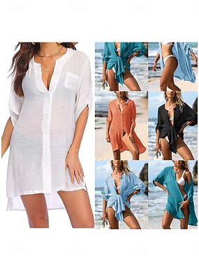 Femmes Mini Robe Robe Blanche Robe de Plage Robe noire Vêtement couvrant Élégant Mode Classique Quotidien Extérieur Plage Coupe Ample Uni Demi Manches Col en V Bleu Noir Blanche Vert Véronèse Ét