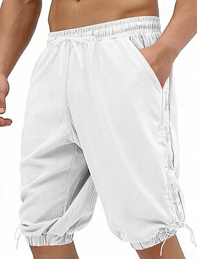 Homme Pantalons en Lin Pantalons Pantalon d'été Pantalons Amples Pantalons de Plage Cordon de serrage Taille Élastique Couleur Unie Confort Respirant Longueur Genou Quotidien Extérieur Plage Vacances