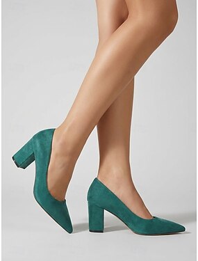 Escarpins en daim rose poudré pour femme - élégants escarpins à bout pointu et talons carrés, parfaits pour le quotidien et les tenues décontractées. &look urbain stylé