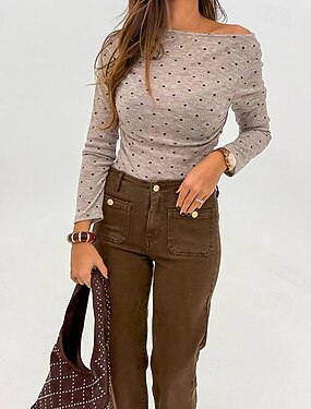 Femmes Chemisier Hauts Élégants Hauts moulants Froncé Patchwork Imprimé À pois Uni Élégant ancien Dames manche longue Col ras du cou Hauts Réguliers Quotidien Travail Fête Marron clair Abricot