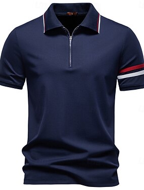 Homme Polo Polo à fermeture éclair Occasionnel Quotidien Col de chemise Manche Courte Mode Basique Rayure Quart de zip Respirable Été Coupe régulière Noir Blanche bleu marine Polo