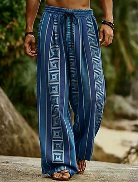 Homme Géométrique Ethnique Clé grecque Pantalons Pantalon décontracté Pantalons Amples Taille Moyenne Boho Vintage Rétro Maison Extérieur Vacances Taille élastique avec cordon de serrage Pantalon en