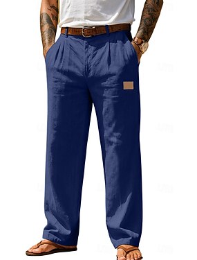 Homme Pantalons en Lin Pantalons Pantalon d'été Pantalons Amples Pantalons de Plage Cordon de serrage Taille Élastique Jambe Droite Uni Confort Respirant Longueur complète Extérieur Fête Plage