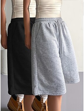 Femmes Bermuda Shorts Capri Chinos Shorts Vacances Mode Streetwear Longueur Genou Taille haute Uni Cordon de serrage Avec Poches Taille Élastique Confort Respirabilité Confortable Micro-Élastique