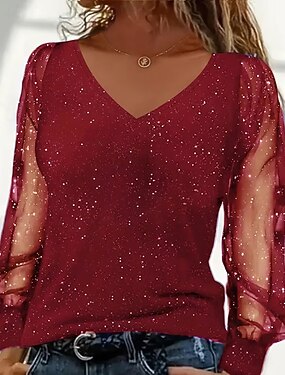 Femmes Haut d'épissage en dentelle Chemisier Hauts Élégants Froncé Dentelle Patchwork Uni Élégant ancien Dames manche longue Col en V Hauts Réguliers Quotidien Travail Fête Noir Vin Vert Printemps