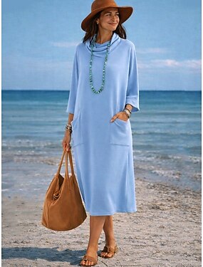 Femmes Robe maxi Robe fourreau Occasionnel Quotidien Coupe Ample Uni Manche 3/4 Col Bénitier Bleu Été Printemps Automne