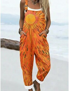 Femmes Combinaison Actif Graphique Sans manches Sans manches Col carré Avec Poches Imprimé Quotidien Vacances Coupe Ample Orange Été