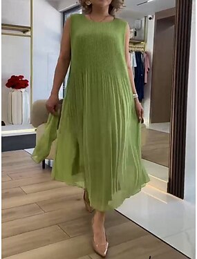 Femmes Robe Midi Robe Décontractée Mousseline de Soie Robe en Chiffon Élégant Mode Moderne Extérieur Vacances Sortir Coupe Ample Uni Sans manches Col ras du cou Vert Été Printemps