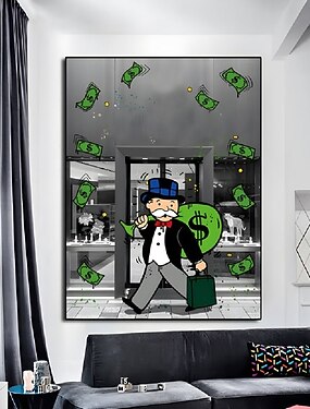 main peint à la main peinture à l'huile mur moderne peinture abstraite alec monopole street art argent toile peinture décoration de la maison décor toile roulée pas de cadre non tendu