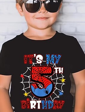 100% Coton Enfants Garçons Noir Graphique toile d'araignée C'est mon 5e anniversaire T-shirt Chemisier Col Rond Manche Courte Quotidien Extérieur Anniversaire Mode Streetwear Designer Impression Ét