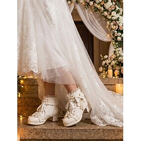 Bottes de mariée ivoire à lacets et talons hauts pour femme, avec nœud &Chaussures d'inspiration vintage ornées de perles pour les mariées lors de mariages en ville