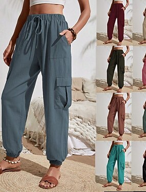 Femmes Pantalons Pantalon d'été Pantalon jogging Pantalons de Plage Vacances Mode Décontracté Quotidien Longueur cheville Taille haute Couleur Unie Uni Cordon de serrage Avec Poches Ceinture Élastique
