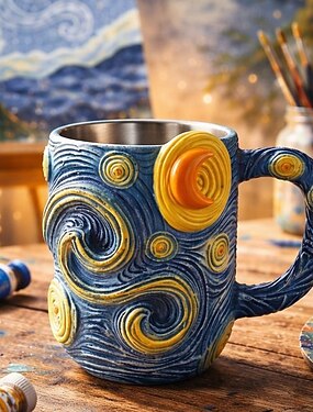 Mug en résine 3D La Nuit étoilée de Van Gogh, tasse à café artistique peinte à la main, mug à thé sculpté en relief, cadeau artistique pour les amateurs d'art, décoration intérieure &décoration de