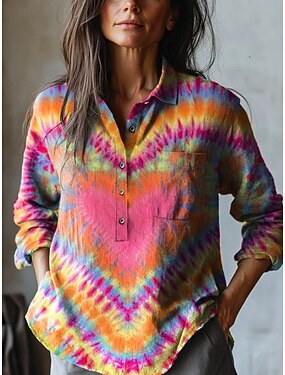 Femmes Chemisier Imprimé Cœur Teinture par nouage Vacances ancien Quotidien manche longue Col de chemise Hauts Réguliers Quotidien Extérieur Fête Rose Claire Été Printemps Automne