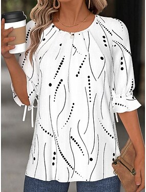 Femmes Chemisier Imprimé Géométrique Élégant Occasionnel Demi Manches Col ras du cou Hauts Réguliers Quotidien Bleu Blanche Jaune Rose Claire Violet Printemps Automne
