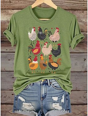 Femmes T-shirt Imprimé Graphique Animal Coq ancien Élégant Classique Manche Courte Col rond Hauts Réguliers Quotidien Noir Rouge Vert Été