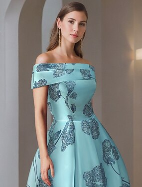 Ligne A Longueur thé Robes de Cocktail Robes de soirée ancien Fête Éclat Sans manches Épaules Dénudées Bal de promo Anniversaire Satin avec Paillettes Imprimé floral