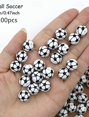 200 perles de football de 12 mm, petites perles acryliques pour la création de bijoux, bracelets, colliers et autres loisirs créatifs ; perles en vrac en forme de ballon de football pour la décoration