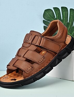 Sandales pour hommes en similicuir avec bride velcro, respirantes et ajustables, idéales pour les vacances d'été, les journées à la plage et les tenues décontractées.