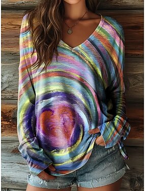 Femmes T-shirt Imprimé Graphique Géométrie ancien Élégant Occasionnel manche longue Col ras du cou Hauts Longs Quotidien Bleu Orange Gris Automne Hiver