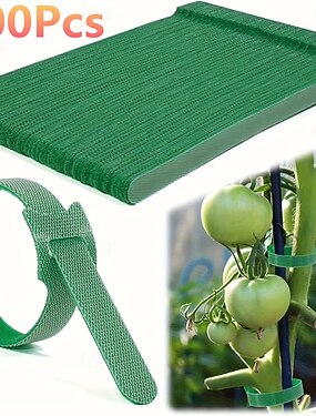 Lot de 100 attaches pour plantes en nylon antidérapantes, réutilisables et réglables, vertes, idéales pour les plantes grimpantes, le soutien et l'entretien du jardin, en toute sécurité &outil de