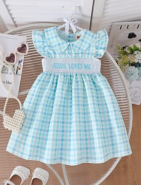 FILLE 3D Plaid Robe de Soirée Sans manches Été Fête Occasionnel Tout-petit 1-5 ans Robe Décontractée Mi-long Coupe Ample