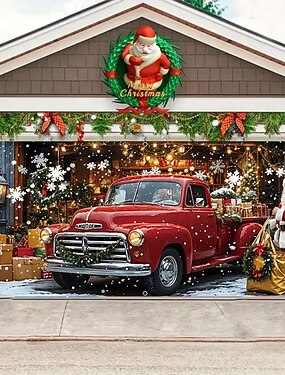 Noël tapisserie Couverture de porte de garage Grande suspension Automatique Cadeau Mignon 3D Soirée Outdoor Vacances Arrière-plans de prise de vue Yard Décoration d'intérieur