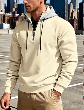 Homme Sweat-shirt Sweat à capuche Pull Sweat-shirt quart de fermeture éclair Abricot Noir Blanche Jaune Vert Véronèse Col montant Uni Patchwork Sport & Loisir Occasionnel Quotidien Streetwear Frais