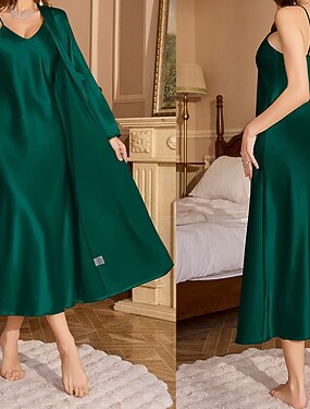 Femmes Loungewear Robe Chemise de Nuit Mode Occasionnel Doux Couleur Unie Patchwork Robes Maison Vacances manche longue Col en V Noir Champagne Rose Claire Vin Vert Été Printemps Automne Coupe