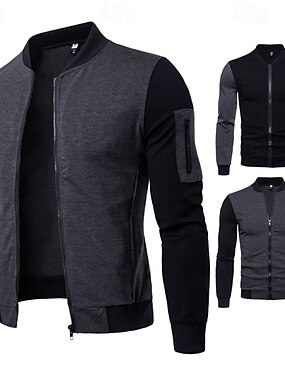 Homme Sweat-shirt Noir bleu marine Marron Kaki Gris Clair Col montant Bloc de Couleur Jacquard Patchwork A côtes Texturé Sport & Loisir Quotidien Fête Polyester Streetwear Basique Occasionnel
