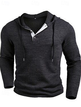 Homme Pull Pull Tricoté Pull en maille Côtelé Tricoter Hauts Réguliers Boutons Tricoté Uni À capuche Mode Streetwear Occasionnel Tenue quotidienne Vêtement Tenue Automne Hiver Gris S M L