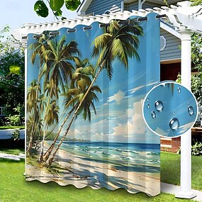 Rideaux d'extérieur imperméables pour intimité, rideaux de terrasse coulissants, rideaux de pergola avec œillets, palmiers de plage, paysage pour tonnelle, balcon, porche, fête, 1 panneau