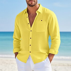 Homme Chemise Chemise en lin Chemise d'été Tenue de plage Chemise Boutonnée Uni Occasionnel Vacances Noir Blanche Jaune bleu marine manche longue Col Rabattu Été Printemps Vêtement Tenue Avec Poches