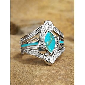 Bague bohème turquoise pour femme – en alliage, plusieurs tailles, idéale pour un style décontracté et des vacances à la plage