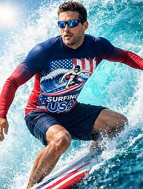 Homme Lumière Standard 250e anniversaire de l'Amérique Jour de l'Indépendance Maillot Anti UV Tee-shirt de Baignade Drapeau national UPF50+ Protection UV Séchage Rapide manche longue Maillot de Bain