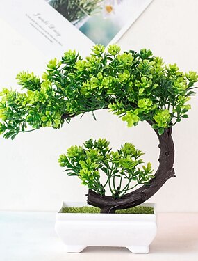 Plante artificielle, petit bonsaï, pour la décoration intérieure (salon, salle de bain, étagère, entrée, table, étagère murale), style champêtre moderne, 21,5 cm de haut, vert.