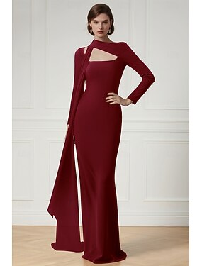 Fourreau Colonne Traîne Balayage Longueur au sol Robes de Bal Robe de Soirée Tenue de soirée Élégant Scintillant Style Célébrité manche longue Col carré Fête de jardin Mariage Crêpe Extensible avec