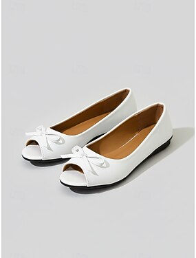 Ballerines à bout ouvert et nœud crème pour femme – Chaussures élégantes à enfiler style ballerines des années 1950 pour demoiselles d'honneur, tenues printanières et confort quotidien