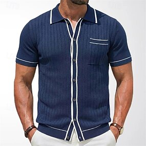 Homme Chemise Tricot côtelé Texture Chemise Décontractée Chemise Boutonnée Rose Claire bleu marine Vert Manche Courte Uni Rayé Col de chemise Occasionnel Quotidien Poche Avant Vêtement Tenue Élégant