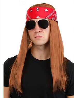 Perruques rocker des années 70 et 80, tatouages, ensemble de costumes, bandeau glamour, perruque mulet rockstar, manches de tatouage, perruques heavy metal, perruque métal, perruque rock star pour