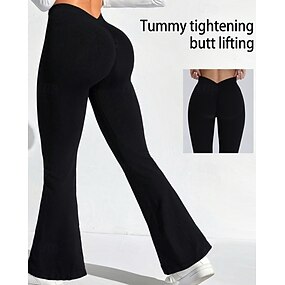 Femmes Pantalon de yoga Leggings de yoga Pantalon évasé Taille haute Pilates Entraînement en salle Entraînement Collants Couleur Unie Noir bleu marine gris foncé Spandex Automne Des sports Tenues de