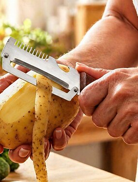 Épluche-légumes avec manche en bois et décapsuleur, épluche-légumes multifonctionnel pour la cuisine, outil pratique pour éplucher fruits, citrouilles, pommes de terre, carottes et autres légumes.