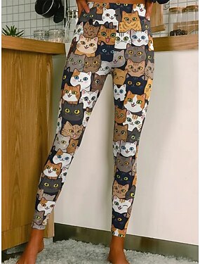 Femmes Leggings Leggings confortables Vacances Occasionnel Longueur complète Taille haute Graphique Chat Impression Confort Confortable Haute Élasticité Occasionnel Quotidien Vacances Gris Printemps
