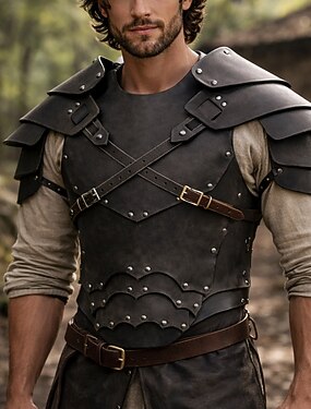 Rétro Vintage Médiéval Renaissance Armure Viking Ranger Déguisement Unisexe Fantaisie Halloween Carnaval Foire de la Renaissance LARP Adultes Armure d'épaule Protège-poitrine Toutes saisons