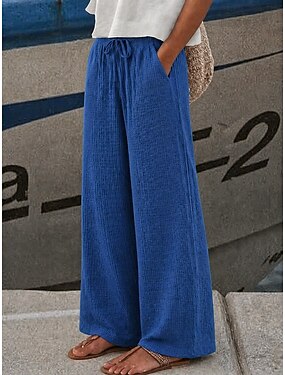Femmes Coton mélangé Faux coton lin Jambe large Chinos Vacances Streetwear Basique Longueur complète Taille moyenne Uni Avec Poches Taille Élastique Confortable Respirant Micro-Élastique Quotidien