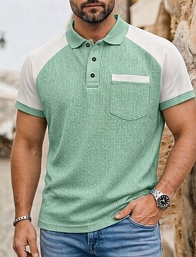Homme Chemises Polo Gaufre Texturé Occasionnel Fête Revers Manche Courte Mode Basique Bloc de Couleur Boutons Flexible Printemps & Été Bleu Jaune Violet Vert Gris Chemises Polo Gaufre