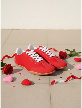 Baskets rouges décontractées pour femmes avec lacets blancs – chaussures légères et confortables pour la Saint-Valentin, les sorties décontractées et le quotidien