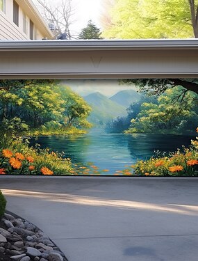 Décorations de porte paysage Couverture de porte de garage Bannière extérieure printemps lac Grande toile de fond pour décoration de porte de garage extérieure Décorations murales de maison pour les