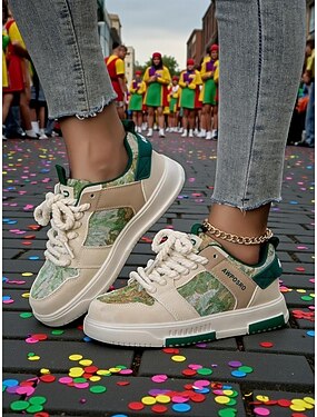 Baskets athlétiques à lacets imprimé confettis pour femmes - Chaussures festives confortables avec semelle rembourrée pour les défilés de carnaval les célébrations de rue les courses quotidiennes et