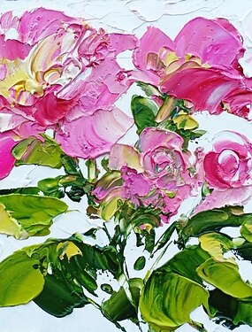 Fait à la main peint à la main peinture à l'huile mur art moderne fleur rose décoration de la maison décor toile roulée pas de cadre non étiré